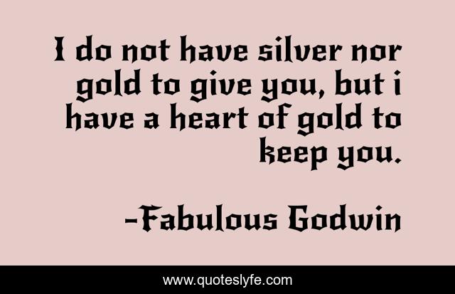 This page presents the quote "I do not have silver nor gold to give you, but i have a heart of gold to keep you.". Author of this quote is Fabulous Godwin. This quote is about heart, love, gold, feelings, emotional, affection,.