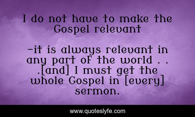 "it is always relevant in any part of the world . . .[and] I must get the whole Gospel in [every] sermon. Quotes." Quoteslyfe.com, 2025. Fri. 05 Dec. 2025. <https://www.quoteslyfe.com/quote/I-do-not-have-to-make-the-251903>.