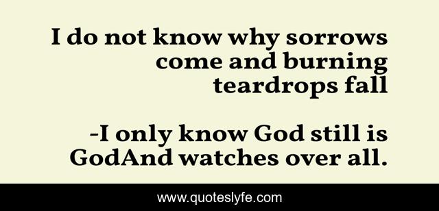 This page presents the quote "I do not know why sorrows come and burning teardrops fall". Author of this quote is I only know God still is GodAnd watches over all.. .