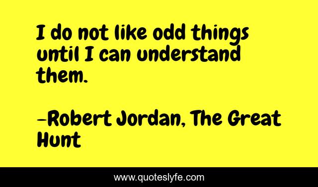 This page presents the quote "I do not like odd things until I can understand them.". Author of this quote is Robert Jordan, The Great Hunt. .