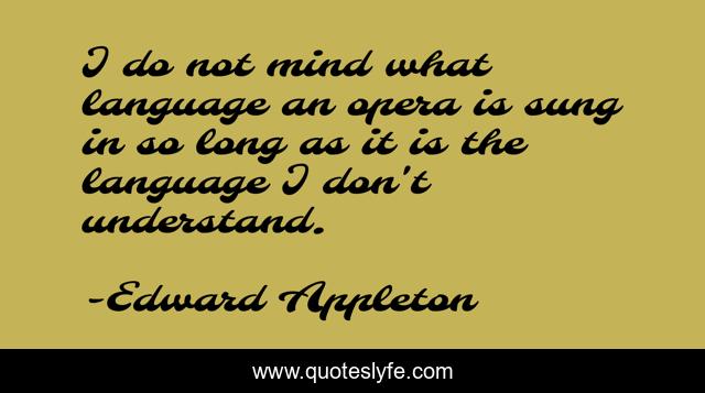 This page presents the quote "I do not mind what language an opera is sung in so long as it is the language I don't understand.". Author of this quote is Edward Appleton. .
