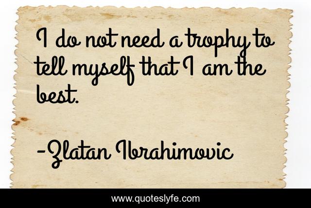 This page presents the quote "I do not need a trophy to tell myself that I am the best.". Author of this quote is Zlatan Ibrahimovic. This quote is about need, myself,.