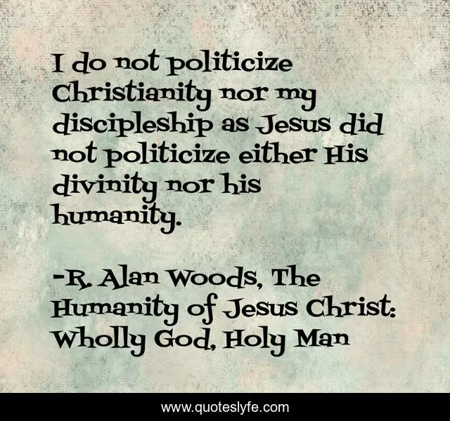 "R. Alan Woods, The Humanity of Jesus Christ: Wholly God, Holy Man Quotes." Quoteslyfe.com, 2025. Sat. 06 Dec. 2025. <https://www.quoteslyfe.com/quote/I-do-not-politicize-Christianity-nor-my-206223>.