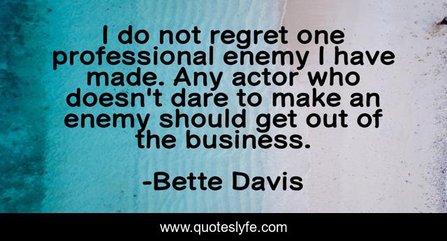 This page presents the quote "I do not regret one professional enemy I have made. Any actor who doesn't dare to make an enemy should get out of the business.". Author of this quote is Bette Davis. This quote is about professional, regret, enemy,.