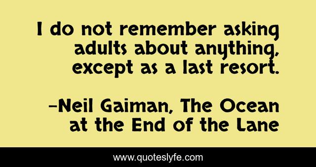 This page presents the quote "I do not remember asking adults about anything, except as a last resort.". Author of this quote is Neil Gaiman, The Ocean at the End of the Lane. .