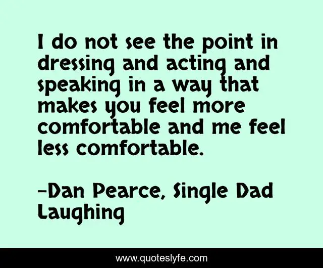 This page presents the quote "I do not see the point in dressing and acting and speaking in a way that makes you feel more comfortable and me feel less comfortable.". Author of this quote is Dan Pearce, Single Dad Laughing. This quote is about pressure, dress-code, conformity, authenticity, dressing,.