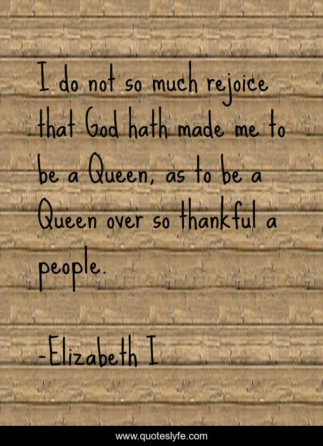 "Elizabeth I Quotes." Quoteslyfe.com, 2025. Sun. 07 Dec. 2025. <https://www.quoteslyfe.com/quote/I-do-not-so-much-rejoice-that-306062>.