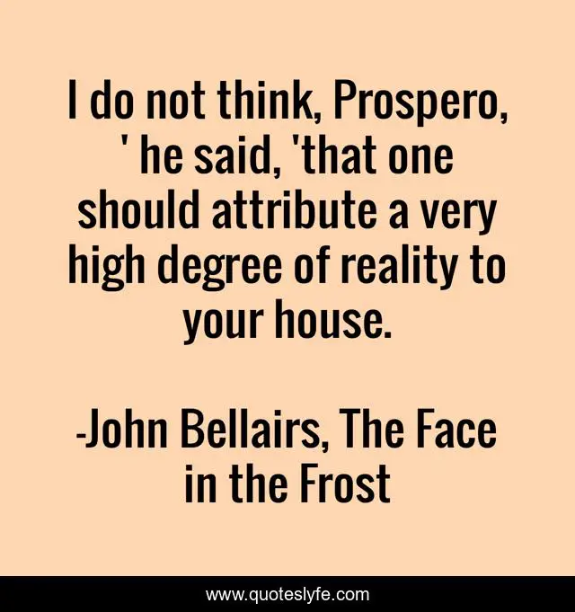 This page presents the quote "I do not think, Prospero, ' he said, 'that one should attribute a very high degree of reality to your house.". Author of this quote is John Bellairs, The Face in the Frost. This quote is about fantasy, comedy, humor, funny, novel,.