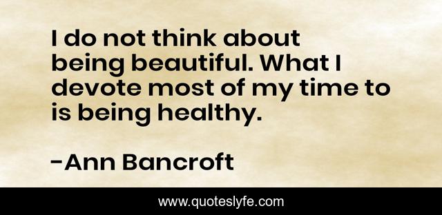 This page presents the quote "I do not think about being beautiful. What I devote most of my time to is being healthy.". Author of this quote is Ann Bancroft. This quote is about beautiful, healthy, time,.