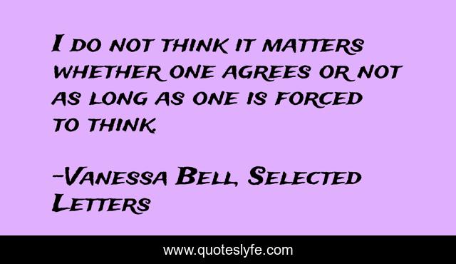 This page presents the quote "I do not think it matters whether one agrees or not as long as one is forced to think.". Author of this quote is Vanessa Bell, Selected Letters. This quote is about letters, biography, artist,.