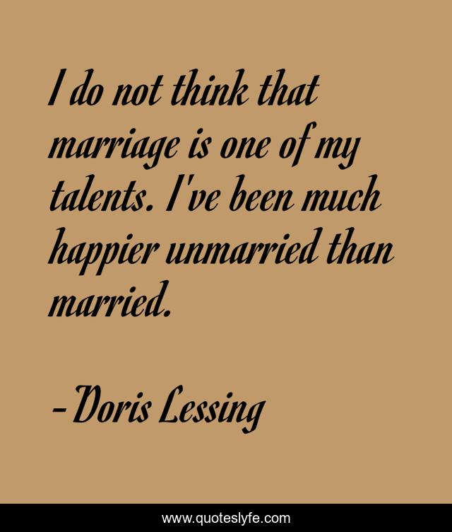 This page presents the quote "I do not think that marriage is one of my talents. I've been much happier unmarried than married.". Author of this quote is Doris Lessing. This quote is about talents, married, think,.