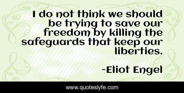 This page presents the quote "I do not think we should be trying to save our freedom by killing the safeguards that keep our liberties.". Author of this quote is Eliot Engel. This quote is about trying, think,.