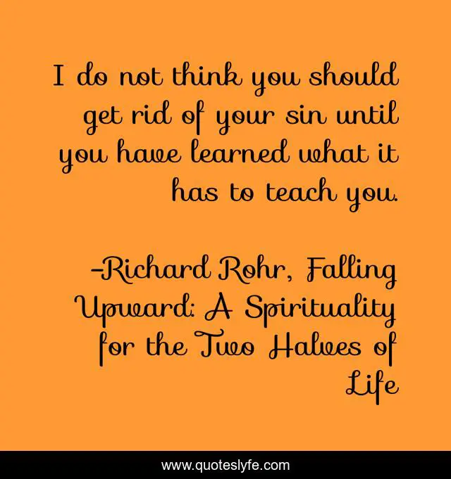This page presents the quote "I do not think you should get rid of your sin until you have learned what it has to teach you.". Author of this quote is Richard Rohr, Falling Upward: A Spirituality for the Two Halves of Life. This quote is about idolatry, sin, humility,.