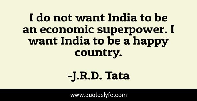 This page presents the quote "I do not want India to be an economic superpower. I want India to be a happy country.". Author of this quote is J.R.D. Tata. This quote is about country, economic-superpower, india, happiness, happy,.