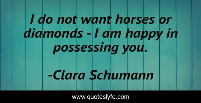 This page presents the quote "I do not want horses or diamonds - I am happy in possessing you.". Author of this quote is Clara Schumann. This quote is about happy, diamonds,.