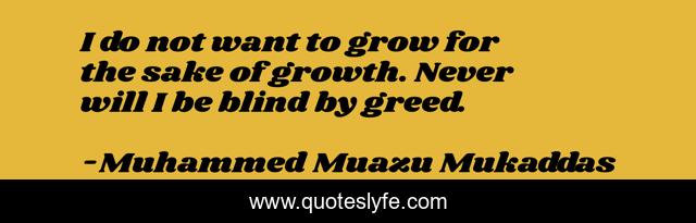This page presents the quote "I do not want to grow for the sake of growth. Never will I be blind by greed.". Author of this quote is Muhammed Muazu Mukaddas. This quote is about life-philosophy, sincerity, greed,.