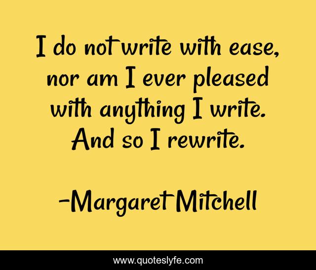 This page presents the quote "I do not write with ease, nor am I ever pleased with anything I write. And so I rewrite.". Author of this quote is Margaret Mitchell. .