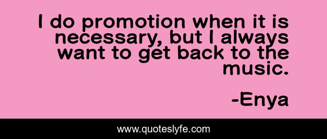 This page presents the quote "I do promotion when it is necessary, but I always want to get back to the music.". Author of this quote is Enya. This quote is about promotion, back,.