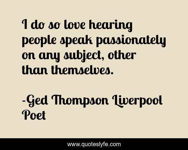 "Ged Thompson Liverpool Poet Quotes." Quoteslyfe.com, 2025. Tue. 09 Dec. 2025. <https://www.quoteslyfe.com/quote/I-do-so-love-hearing-people-speak-179463>.