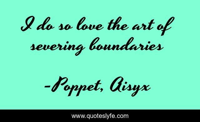 This page presents the quote "I do so love the art of severing boundaries". Author of this quote is Poppet, Aisyx. This quote is about paranormal-romance, vampire-romance,.