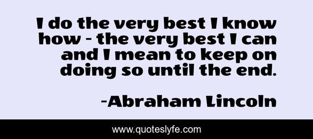 This page presents the quote "I do the very best I know how - the very best I can and I mean to keep on doing so until the end.". Author of this quote is Abraham Lincoln. .