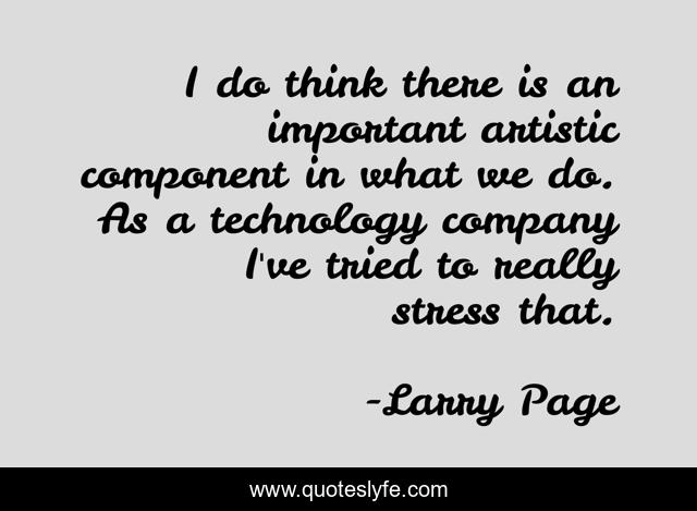 This page presents the quote "I do think there is an important artistic component in what we do. As a technology company I've tried to really stress that.". Author of this quote is Larry Page. This quote is about stress, company, think,.