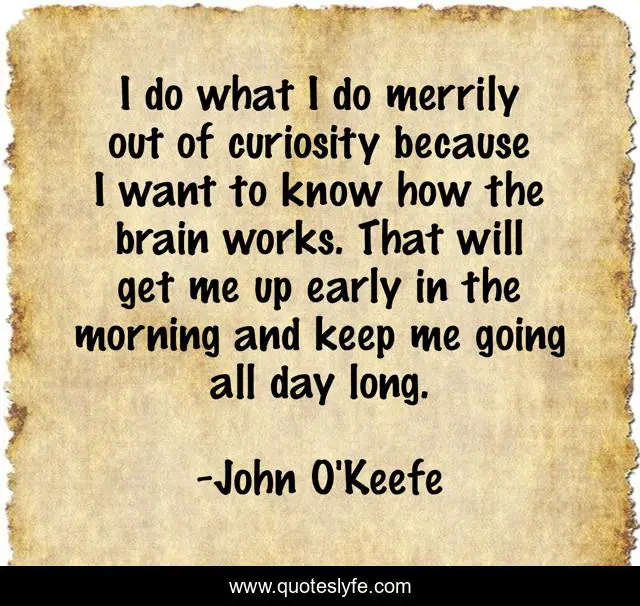This page presents the quote "I do what I do merrily out of curiosity because I want to know how the brain works. That will get me up early in the morning and keep me going all day long.". Author of this quote is John O'Keefe. This quote is about me, day, curiosity,.