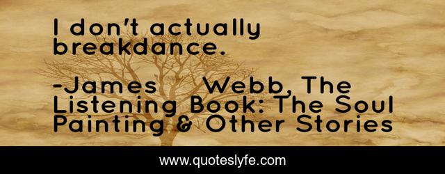 "James Webb, The Listening Book: The Soul Painting & Other Stories Quotes." Quoteslyfe.com, 2025. Fri. 05 Dec. 2025. <https://www.quoteslyfe.com/quote/I-don-t-actually-breakdance-200014>.
