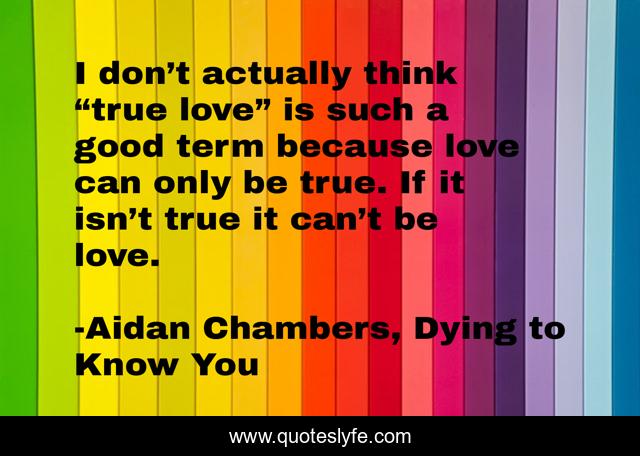 This page presents the quote "I don’t actually think “true love” is such a good term because love can only be true. If it isn’t true it can’t be love.". Author of this quote is Aidan Chambers, Dying to Know You. This quote is about true-love, love, dying, romance, to, affection,.