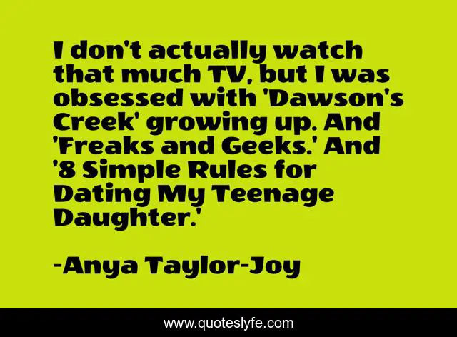 This page presents the quote "I don't actually watch that much TV, but I was obsessed with 'Dawson's Creek' growing up. And 'Freaks and Geeks.' And '8 Simple Rules for Dating My Teenage Daughter.'". Author of this quote is Anya Taylor-Joy. This quote is about simple, rules, daughter,.