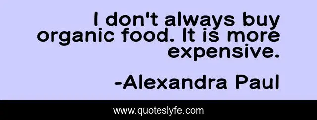 This page presents the quote "I don't always buy organic food. It is more expensive.". Author of this quote is Alexandra Paul. This quote is about always, organic food,.
