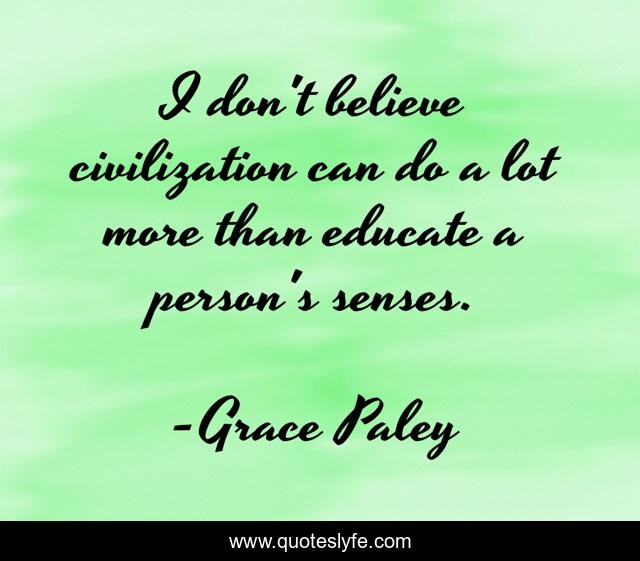 This page presents the quote "I don't believe civilization can do a lot more than educate a person's senses.". Author of this quote is Grace Paley. This quote is about helping, people,.