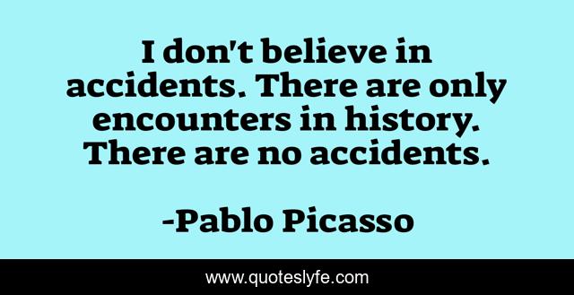 This page presents the quote "I don't believe in accidents. There are only encounters in history. There are no accidents.". Author of this quote is Pablo Picasso. This quote is about only, believe, accidents,.