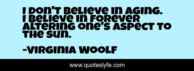 This page presents the quote "I don't believe in aging. I believe in forever altering one's aspect to the sun.". Author of this quote is Virginia Woolf. .