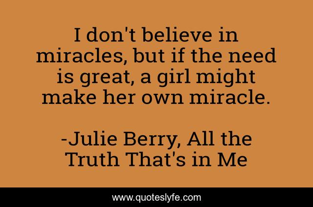 "Julie Berry, All the Truth That's in Me Quotes." Quoteslyfe.com, 2025. Sat. 06 Dec. 2025. <https://www.quoteslyfe.com/quote/I-don-t-believe-in-miracles-but-236364>.