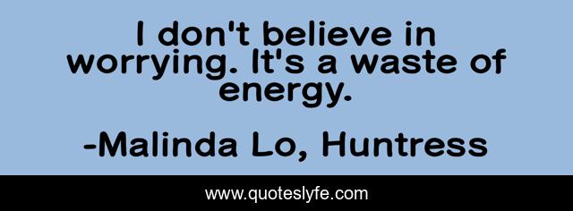 This page presents the quote "I don't believe in worrying. It's a waste of energy.". Author of this quote is Malinda Lo, Huntress. This quote is about wasted-time, worrying, wisdom,.