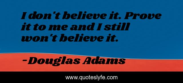 This page presents the quote "I don't believe it. Prove it to me and I still won't believe it.". Author of this quote is Douglas Adams. This quote is about me, believe, prove,.