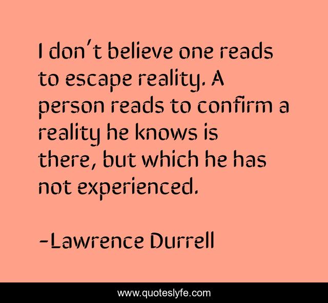 This page presents the quote "I don’t believe one reads to escape reality. A person reads to confirm a reality he knows is there, but which he has not experienced.". Author of this quote is Lawrence Durrell. This quote is about confirmation, reading, reality,.