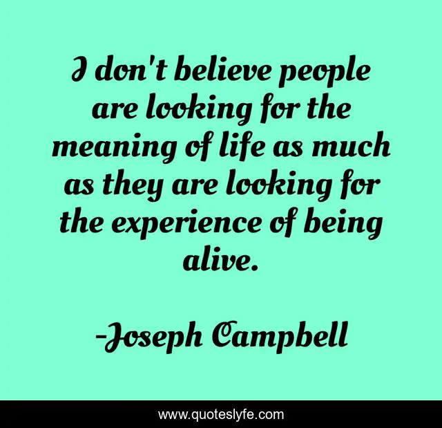 This page presents the quote "I don't believe people are looking for the meaning of life as much as they are looking for the experience of being alive.". Author of this quote is Joseph Campbell. This quote is about life, believe, people,.