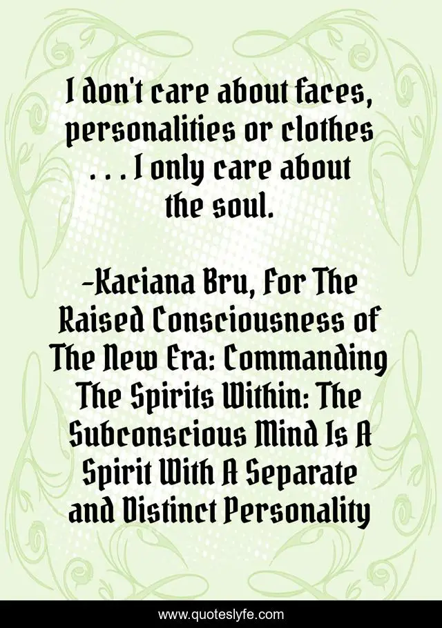 "Kaciana Bru, For The Raised Consciousness of The New Era: Commanding The Spirits Within: The Subconscious Mind Is A Spirit With A Separate and Distinct Personality Quotes." Quoteslyfe.com, 2025. Tue. 09 Dec. 2025. <https://www.quoteslyfe.com/quote/I-don-t-care-about-faces-personalities-159516>.