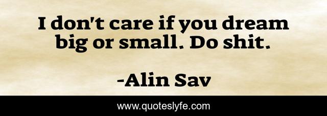 This page presents the quote "I don't care if you dream big or small. Do shit.". Author of this quote is Alin Sav. .