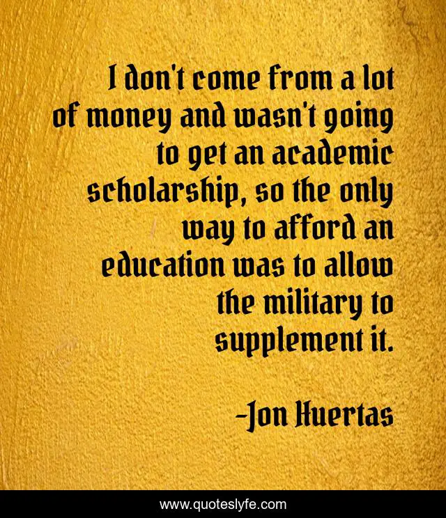 This page presents the quote "I don't come from a lot of money and wasn't going to get an academic scholarship, so the only way to afford an education was to allow the military to supplement it.". Author of this quote is Jon Huertas. This quote is about money, military, scholarship,.