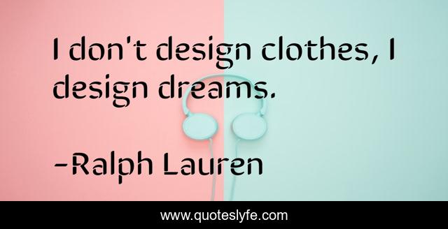 This page presents the quote "I don't design clothes, I design dreams.". Author of this quote is Ralph Lauren. This quote is about design, clothes,.
