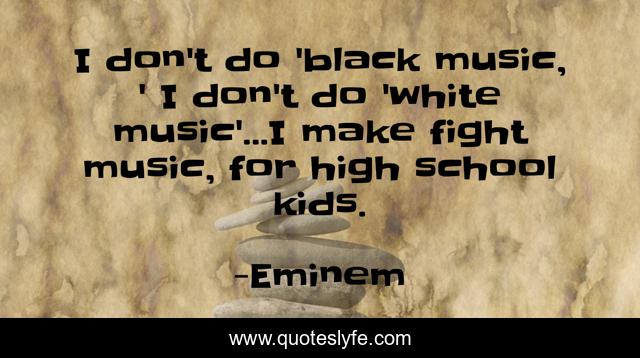 This page presents the quote "I don't do 'black music, ' I don't do 'white music'...I make fight music, for high school kids.". Author of this quote is Eminem. This quote is about politics, humor, music, columbine, satire,.