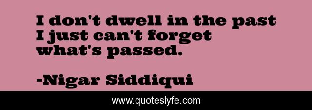 This page presents the quote "I don't dwell in the past I just can't forget what's passed.". Author of this quote is Nigar Siddiqui. .