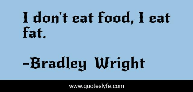This page presents the quote "I don't eat food, I eat fat.". Author of this quote is Bradley Wright. This quote is about food, quote, life, humor,.
