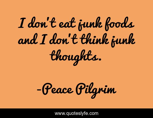 This page presents the quote "I don't eat junk foods and I don't think junk thoughts.". Author of this quote is Peace Pilgrim. This quote is about think, thoughts, eat,.