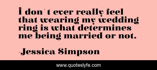 This page presents the quote "I don't ever really feel that wearing my wedding ring is what determines me being married or not.". Author of this quote is Jessica Simpson. This quote is about me, feel, ring,.
