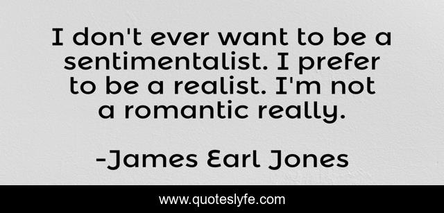 This page presents the quote "I don't ever want to be a sentimentalist. I prefer to be a realist. I'm not a romantic really.". Author of this quote is James Earl Jones. This quote is about realist, really,.