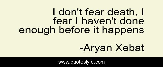 This page presents the quote "I don't fear death, I fear I haven't done enough before it happens". Author of this quote is Aryan Xebat. This quote is about death, done-enough, inspirational, enthusiasm, fear, regret,.